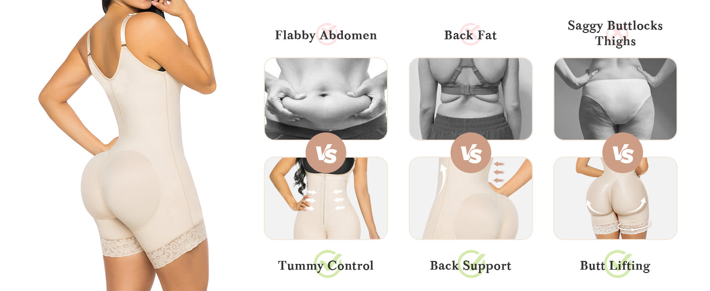 - BUTT LIFT & OPEN CROTCH: The crotch of this faja shapewear for women adopts a zipper opening and closing design, allows you easy access to the toilet without taking off the entire faja colombiana. Lace design at bottom legs can prevent rolling up. Wear this butt lifting shapewear to look even better in your favorite outfits. Charming butt lift can make you enjoy your beautiful curve at anytime.